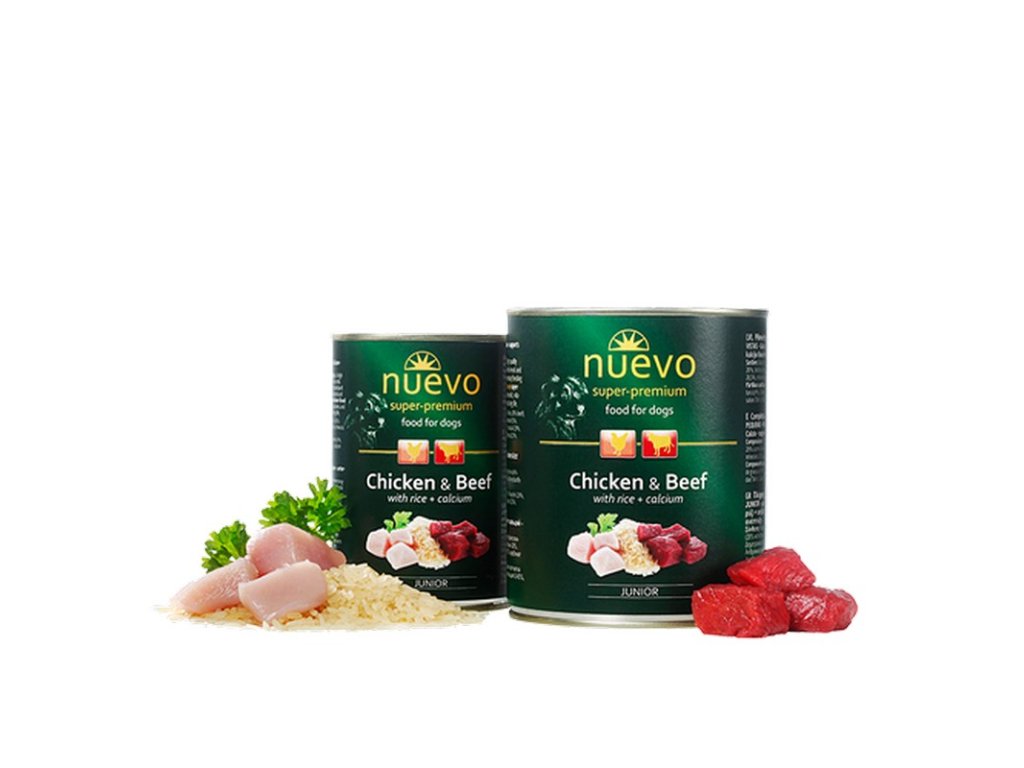 NUEVO ponúka len najlepšie ingrediencie, ako je čerstvé vysoko kvalitné mäso, zdravé ovocie a najlepšie oleje. Receptúry boli vyvinuté na základe veterinárnych testov a najnovších poznatkov z oblasti výživy.Nuevo Super-premium neobsahuje žiadne umelé farbivá, umelé príchute, konzervačné látky, kostnú múčku. Najvyššia kvalita – vyrobené v Nemecku. Nuevo Junior poskytuje správne živiny pre podporu zdravého rastu. Vysoký podiel čerstvého kuracieho a hovädzieho mäsa