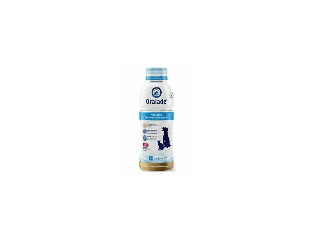 Oralade GI Support je vysoko chutný rehydratačný nápoj pre psy a mačky s jedinečným izotonickým zložením pripravený na okamžité použitie. Obsahuje esenciálne elektrolyty, aminokyseliny, sacharidy a prebiotiká v čistenej vode s prírodnou kuracou príchuťou. Poskytuje rýchlu a účinnú hydratáciu a ľahkú stráviteľnosť, prebiotiká ako potrava pre prospešnú črevnú mikroflóru pomáhajú podporovať zdravie čriev.