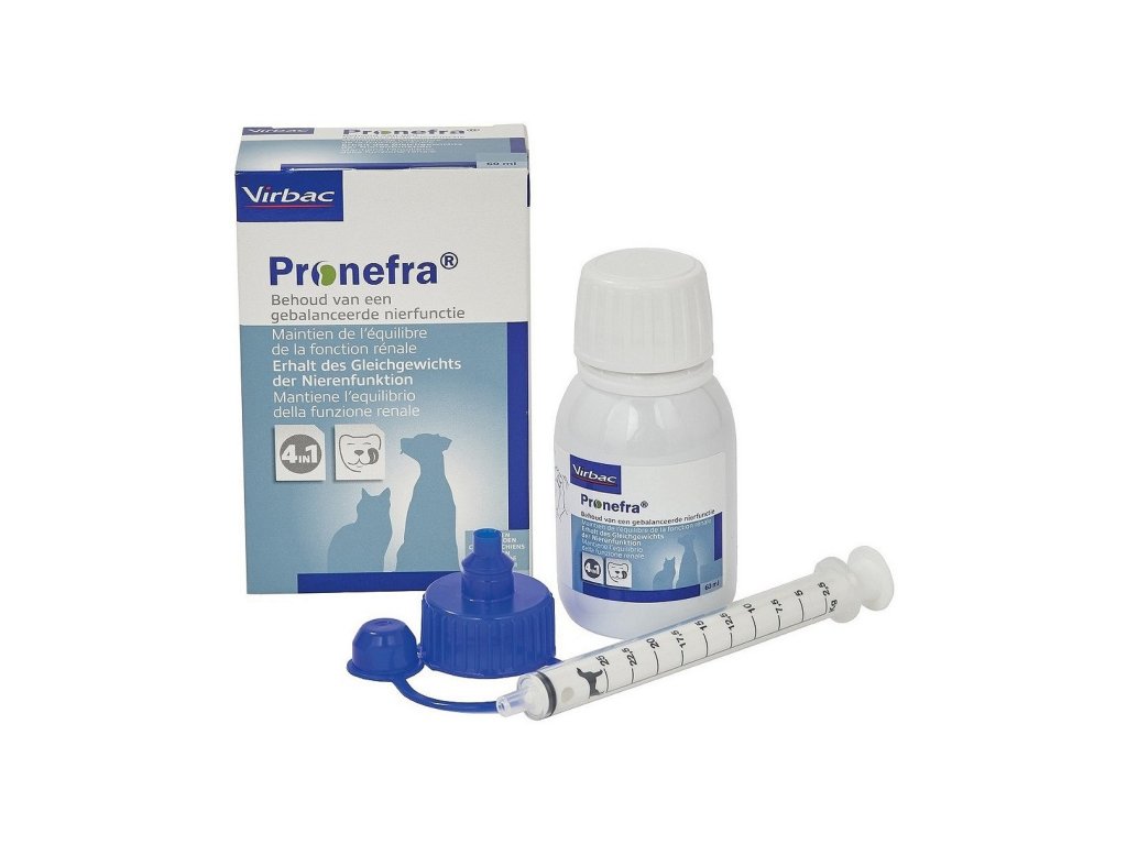Podávajte dvakrát denne najlepšie s kŕmením dávkovacia striekačkou 1 ml na 4 kg ž. hm. (z počiatku najdlhšie po dobu 6 mesiacov). PRONEFRA® môže byť podávaná s kŕmením alebo priamo do tlamy.